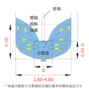 通過分散盤的高速運轉(zhuǎn),使物料呈環(huán)狀流,產(chǎn)生強旋渦,呈螺旋狀下降到渦流底部。粒子間產(chǎn)生強烈的剪切撞擊與磨擦,達到迅速分散、溶解、均勻混合、乳化的功能。