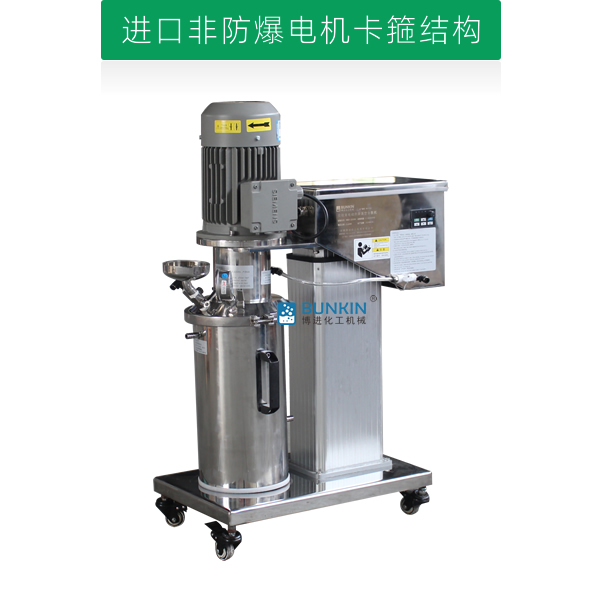 設備帶有電動升降,噪音低能夠快速升降和固定密封桶;分散盤采用內六角螺栓與主軸固定,能夠方便快速拆卸更換,清洗容易;帶有鎖扣密封條裝置,可以快速將密封桶固定。